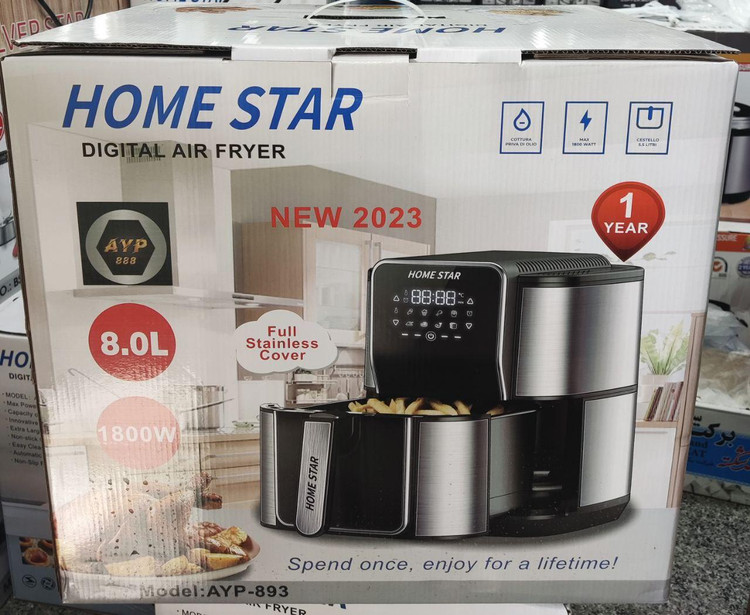 سرخ کن هوم استار اصلی مدل AYP-893 دارای توان ۱۸۰۰ وات است که باعث میشود غذاها به سرعت و به طور یکنواخت پخته شوند. همچنین، دارای نمایشگر ال ای دی است که اطلاعات مربوط به تنظیمات و زمان پخت را به شما نشان میدهد. با این سرخ کن حرفهای، میتوانید به راحتی و با کیفیت بالا غذاهای خوشمزه و سالمی را در خانه تهیه کنید.
