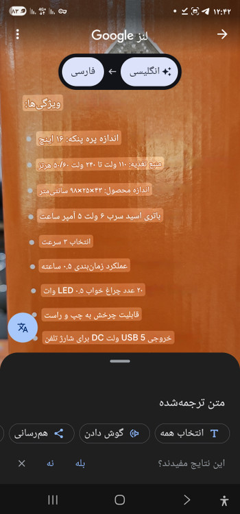 اندازه پره پنکه: ۱۶ اینچ